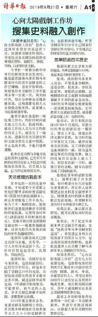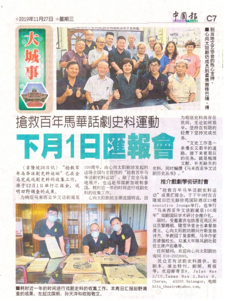 一项搜集马来西亚华人话剧史料的田野调查和全民运动